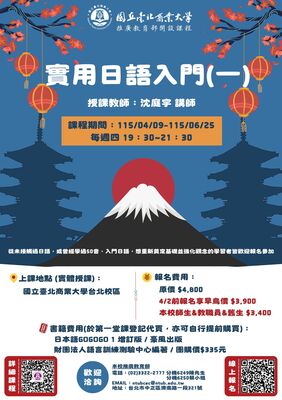 【台北校區】2026年度「 實用日語入門(一)」-115.4.9(週四)開班,熱烈招生中!歡迎報名!